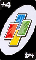 When you play this card, you get to choose the color that continues play PLUS the next player must draw 4 cards from the DRAW pile and lose their turn.