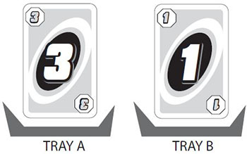 Remember, if there are two visible Stop cards, both trays are open. But once someone covers one of the Stop cards, the other becomes the only Stop card visible and that tray is stopped.
