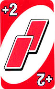 When you play this card, the next player must draw 2 cards and miss their turn. This card may only be played on a matching color or on another Draw Two card.