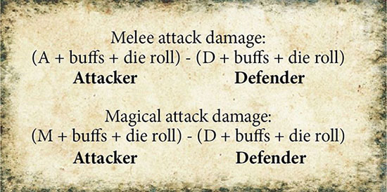 If the difference between the total magic and defense values is above zero that difference is the number of HP the defending hero must lose.-If the total defense value is equal to or greater than the total attack value then the fight is resolved without consequences to either hero.