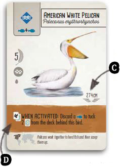 D This indicates that the b8rd's power involves tucking other bird cards under it to represent the creation of a flock. Each of these tucked cards are worth 1 VP at end of game.